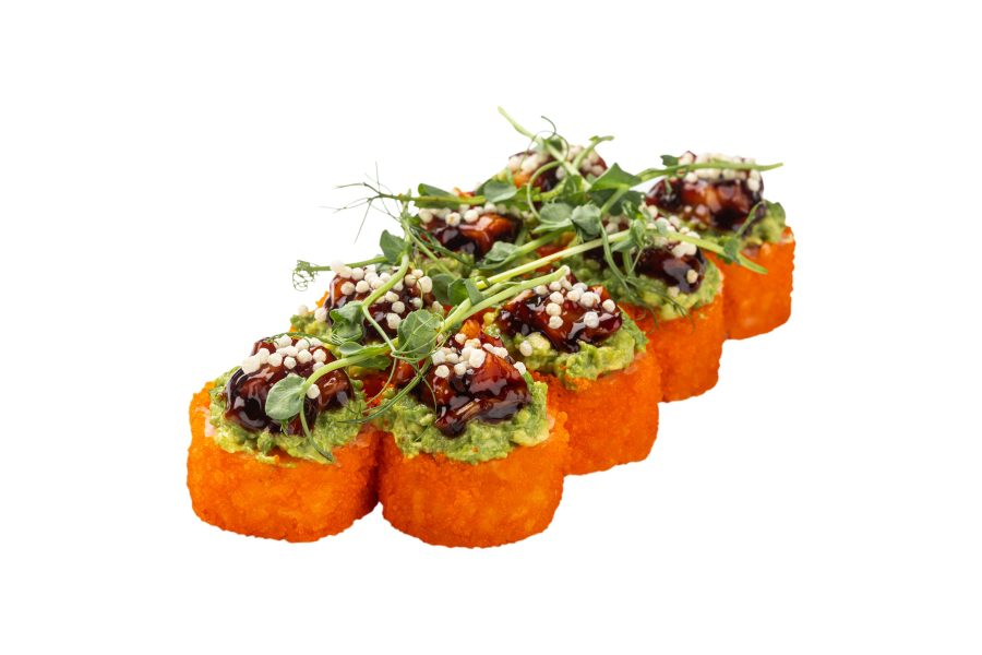 305гнорі, рис, крем-сир, авокадо, лосось, кляр, сухарі панко, соус унагі, помаранчева ікра масагоДодати в кошик 260₴