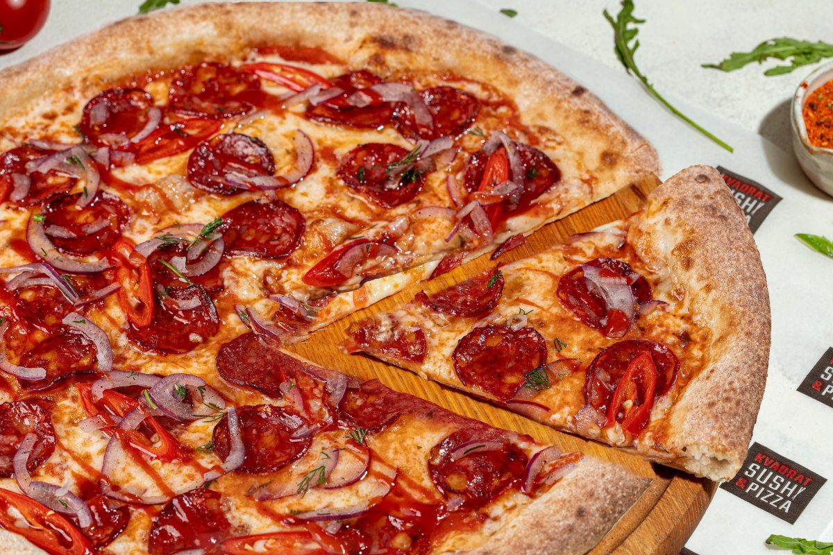моцарела, шампіньйони, запечена курка, креветки, помідори чері, лимон, соус том ям