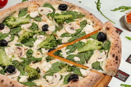 моцарела, шинка, шампіньйони, томатний соус